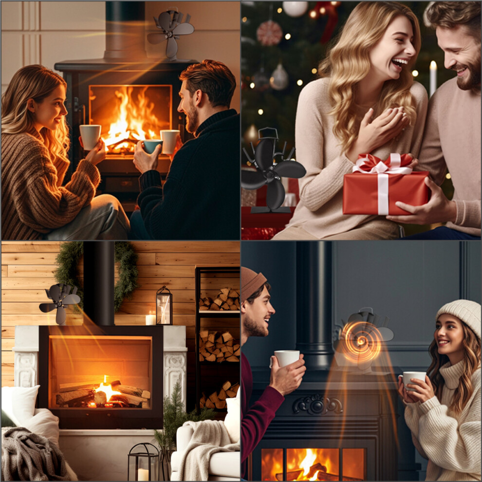 Non Electric Heat Powered Fireplace Fan 4 Blade Stove Fan for Log Burner, Quiet Air Circulator with Overheat Protection for Enhanced Safety