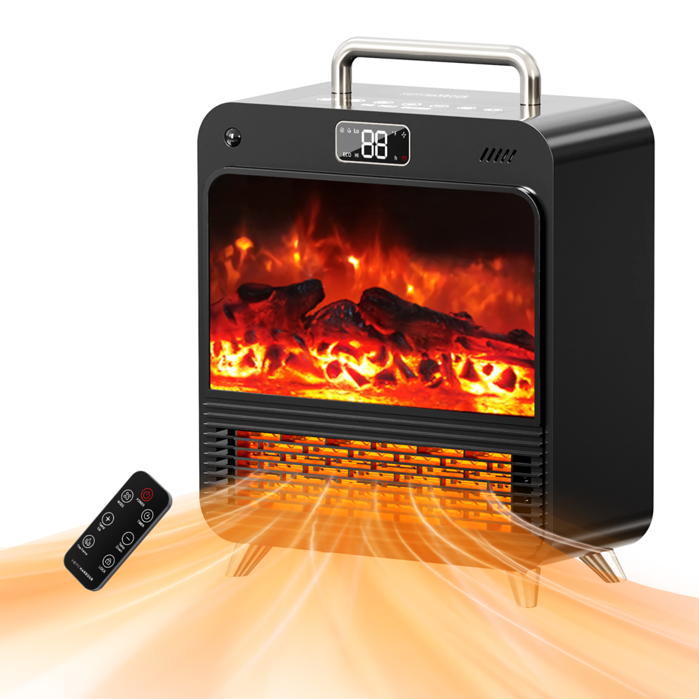 Home Harbour Cozy Heat Fireplace Pro, 1500W Electric Heater, Freestanding Indoor Log Burner Effect with 3D Flame, Portable Fireplace Heater, 3 Modes