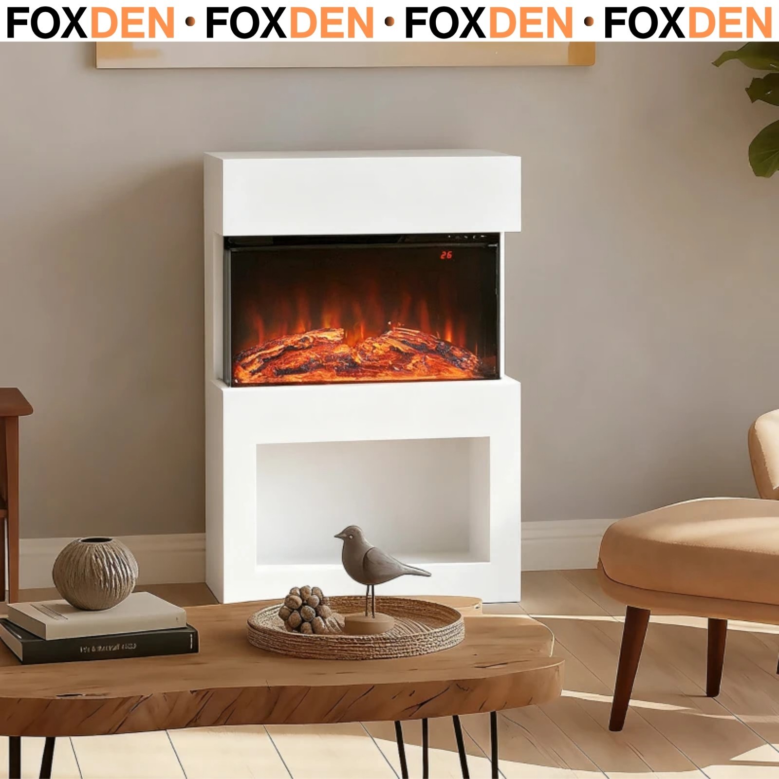 White Electric Fireplace Surround Mantel Remote & Timer Fire Log Burner Shelf