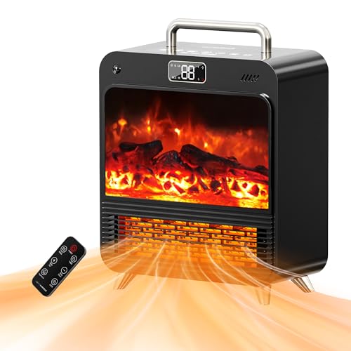 Home Harbour Electric Fireplace Heater Cozy Heat, 1500W Freestanding Space Room Heater with 3D Flame, Log Burner Effect, Remote Control, Timer, 3 Modes, Overheat Protection, Portable, Bedroom, Black