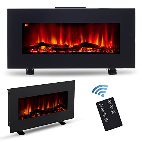 Nordivale 40"/102cm Recessed Electric Fireplace, Wall Mounted/Freestanding Media Wall Fireplace 750/1500W with Remote & Touch Buttons Controlled, 12 LED Color Electric Log Burner, Overheat Protection