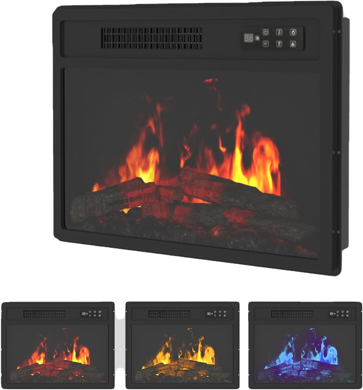 Electric Fireplace Insert, 7-Color Realistic Flame w/ Electric Log Burner Effect