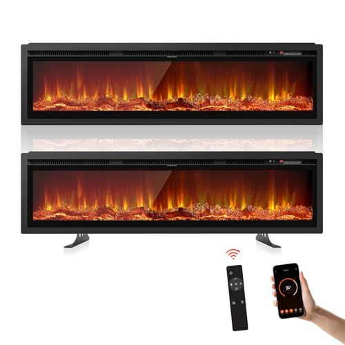Nordivale 50"/127cm Recessed Electric Fireplace, Wall Mounted/Freestanding Media Wall Fireplace 750/1500W with Wi-Fi Smart App-Controlled, 12 LED Color Electric Log Burner, Overheat Protection