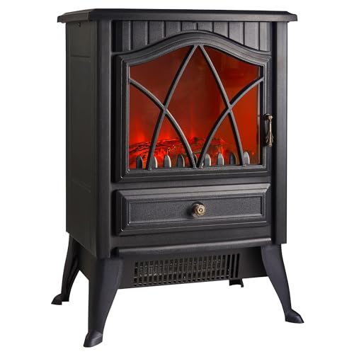 NETTA Stove Heater Electric Fireplace With Fire Flame Effect, Safety Tip Over Switch, Freestanding Portable Electric Log Wood Burner Effect