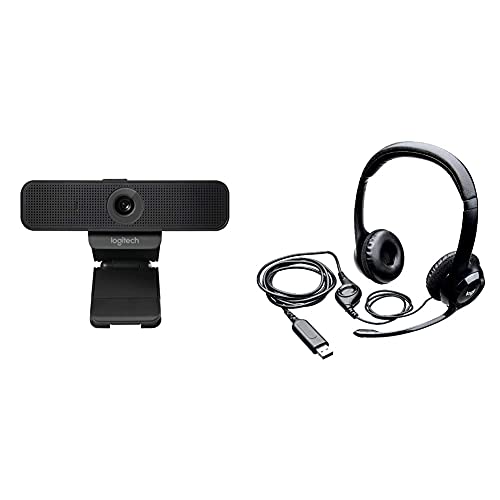 Logitech C925-E Business Webcam, HD 1080p/30fps Video Calling, Light Correction, Autofocus, Clear Audio, Privacy Shade - Black & H390 Wired Headset, Stereo Headphones - Black