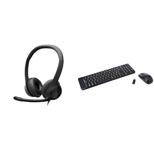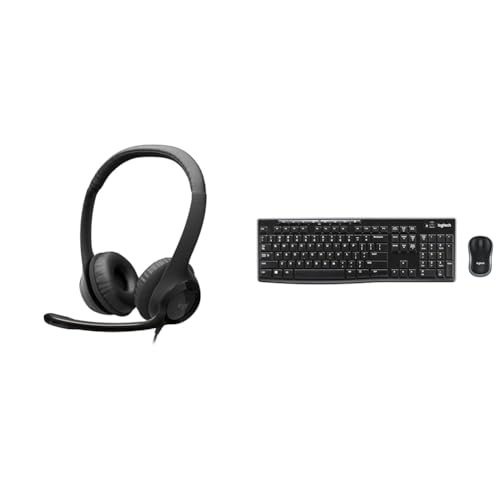 Logitech H390 Wired Headset for PC/Laptop, Stereo Headphones with Noise Cancelling Microphone & MK270 Wireless Keyboard and Mouse Combo for Windows, QWERTZ German Layout - Black