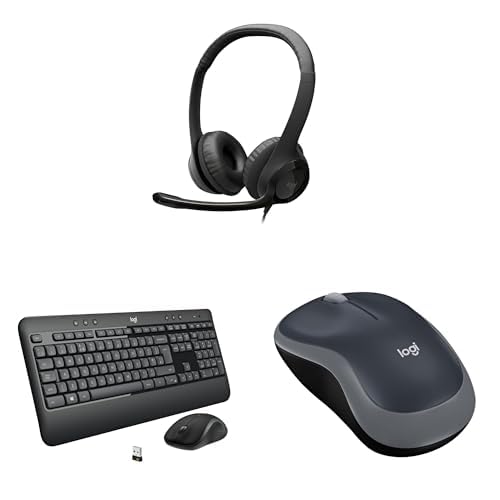 Logitech H390 Wired Headset for PC/Laptop, Stereo Headphones with Noise Cancelling Microphone & M185 Wireless Mouse, 2.4GHz with USB Mini Receiver, 12-Month Battery Life