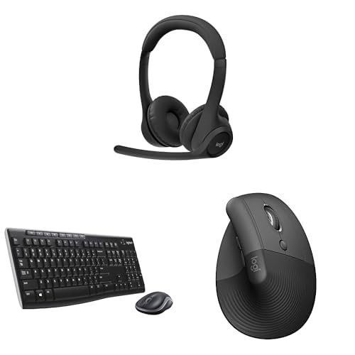 Logitech H390 Wired Headset for PC/Laptop, Stereo Headphones with Noise Cancelling Microphone & MK270 Wireless Keyboard and Mouse Combo for Windows, QWERTZ German Layout - Black