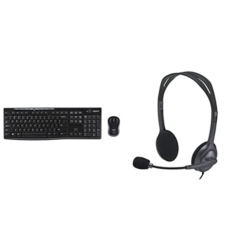 Logitech MK270 Wireless Keyboard and Mouse Combo - Black & H111 Wired Headset, Stereo Headphones with Noise-Cancelling Microphone, 3.5 mm Audio Jack, PC/Mac/Laptop/Smartphone/Tablet - Black