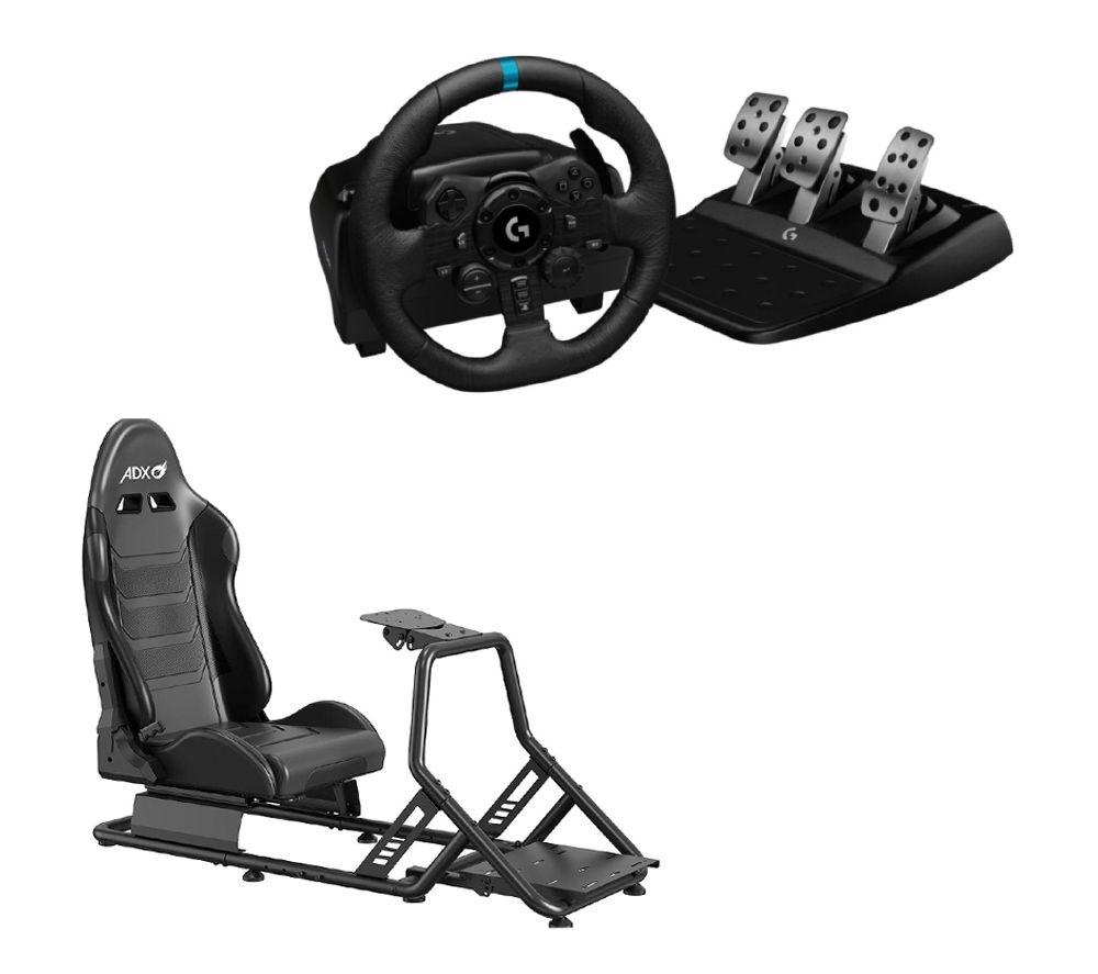 Adx Firebase RS03 Racing Simulation Seat & Logitech G923 PS5 & PS4 Racing Wheel & Pedals Bundle, Black