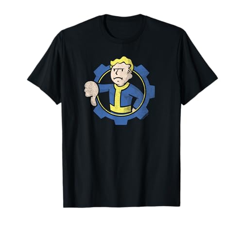 Fallout Vault Boy Thumbs Down Circle Gear Logo Video Game T-Shirt