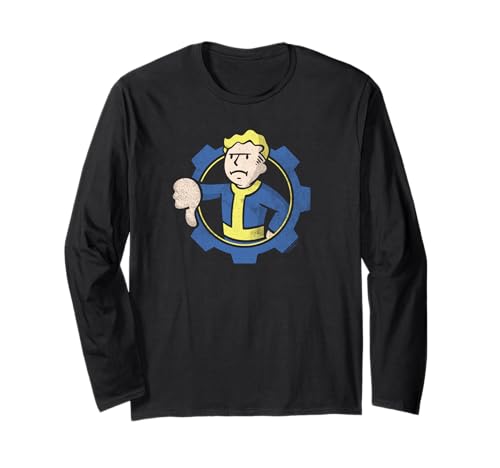 Fallout Vault Boy Thumbs Down Circle Gear Logo Video Game Long Sleeve T-Shirt