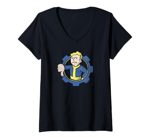 Womens Fallout Vault Boy Thumbs Down Circle Gear Logo Video Game V-Neck T-Shirt