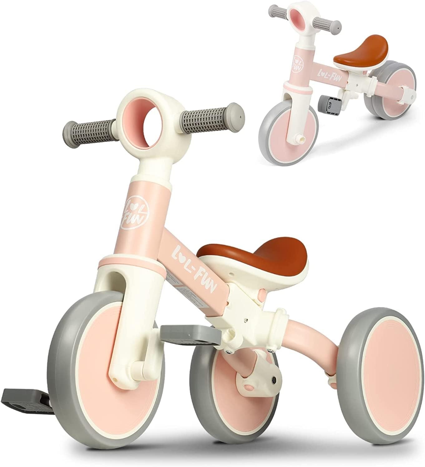 LOL-FUN Toddler Balance Bike for 1 2 Years Old, 4 in 1 Kids Tricycle for 1 to 4