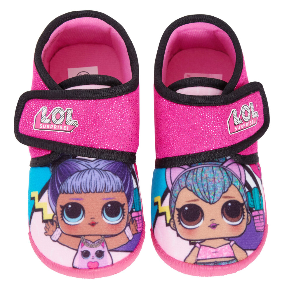 (2 UK) Girls LOL Surprise Dolls Slippers Easy Fasten Indoor House Pink Shoes Infants