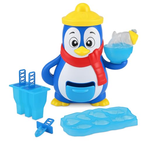 RANRHA Polar Penguin Ice Maker for Kids – Fun Penguin Ice Crusher Toy with Bowl, Spoon, Ice Lolly Moulds & Tray – Easy to Use Shaved Ice Machine for Children Ages 3+