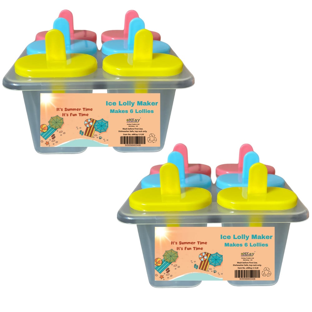 eMKay® 2 - Ice Lolly Maker 6 Section Mould Tray Popsicle Frozen with Drip Guards