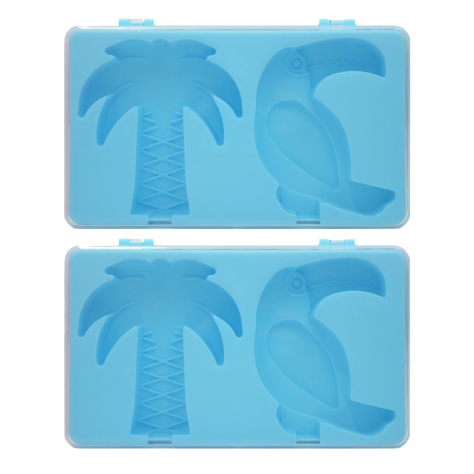 2 x Ice Lolly Maker Set Reusable Sticks Lid Palm Tree Toucan Mould Tropical Blue