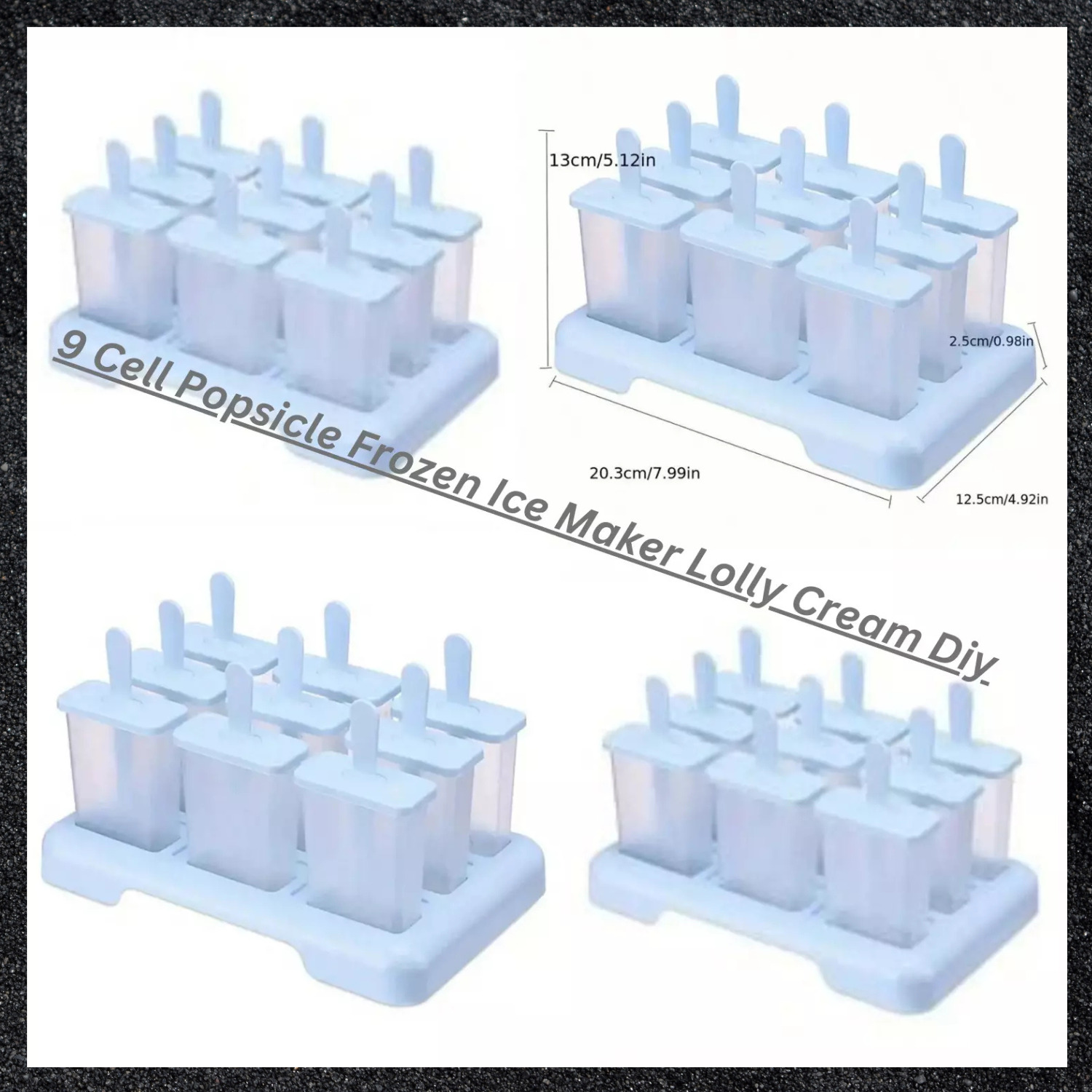 9 Cell Frozen Ice Cream Diy Pop Mold Popsicle Maker Lolly Mould Tray Pan