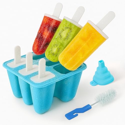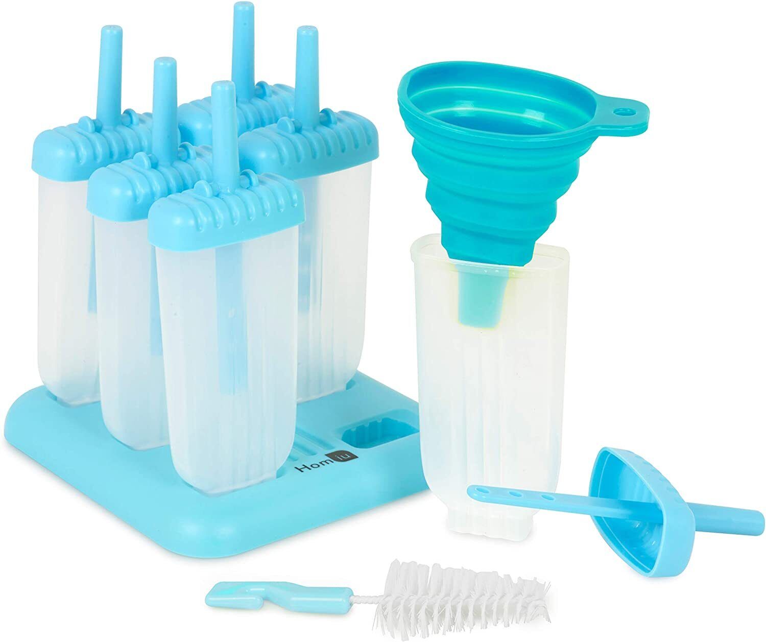 Popsicle Moulds 6 Pack Blue Non-Stick Homiu Drip Tray Funnel Brush Lolly Maker