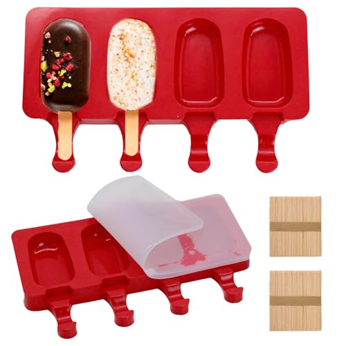 Inheming 2Pcs Non-Stick Cakesicle Moulds, Homemade Oval Popsicle Maker, Lolly Moulds with Sticks with 2 Lids & 100 Wooden Sticks,for DIY Ice Cream, BPA-Free