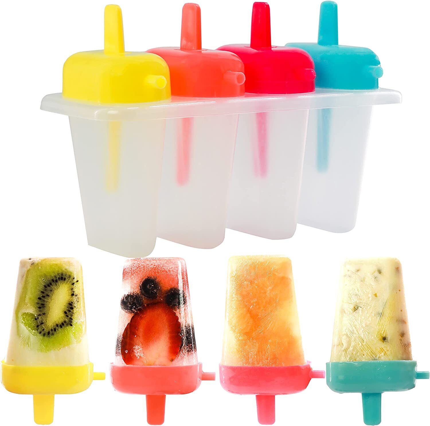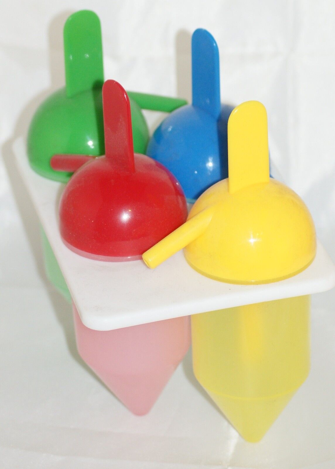 Plastic Ice Lolly Maker Re-usable 4 Pack Purple Yellow Blue NEW Mix Colour