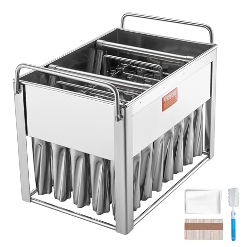 VEVOR Commercial Popsicle Moulds, 40PCS Cylindrical Ice Pop Moulds, Stainless Steel Ice Lolly Popsicle Moulds, Ice Cream Maker Mould Holder with 50PCS Popsicle Sticks & Bags (Single Mould Set - 40PCS)
