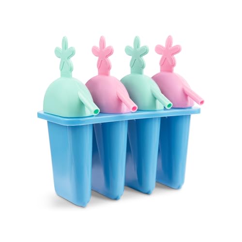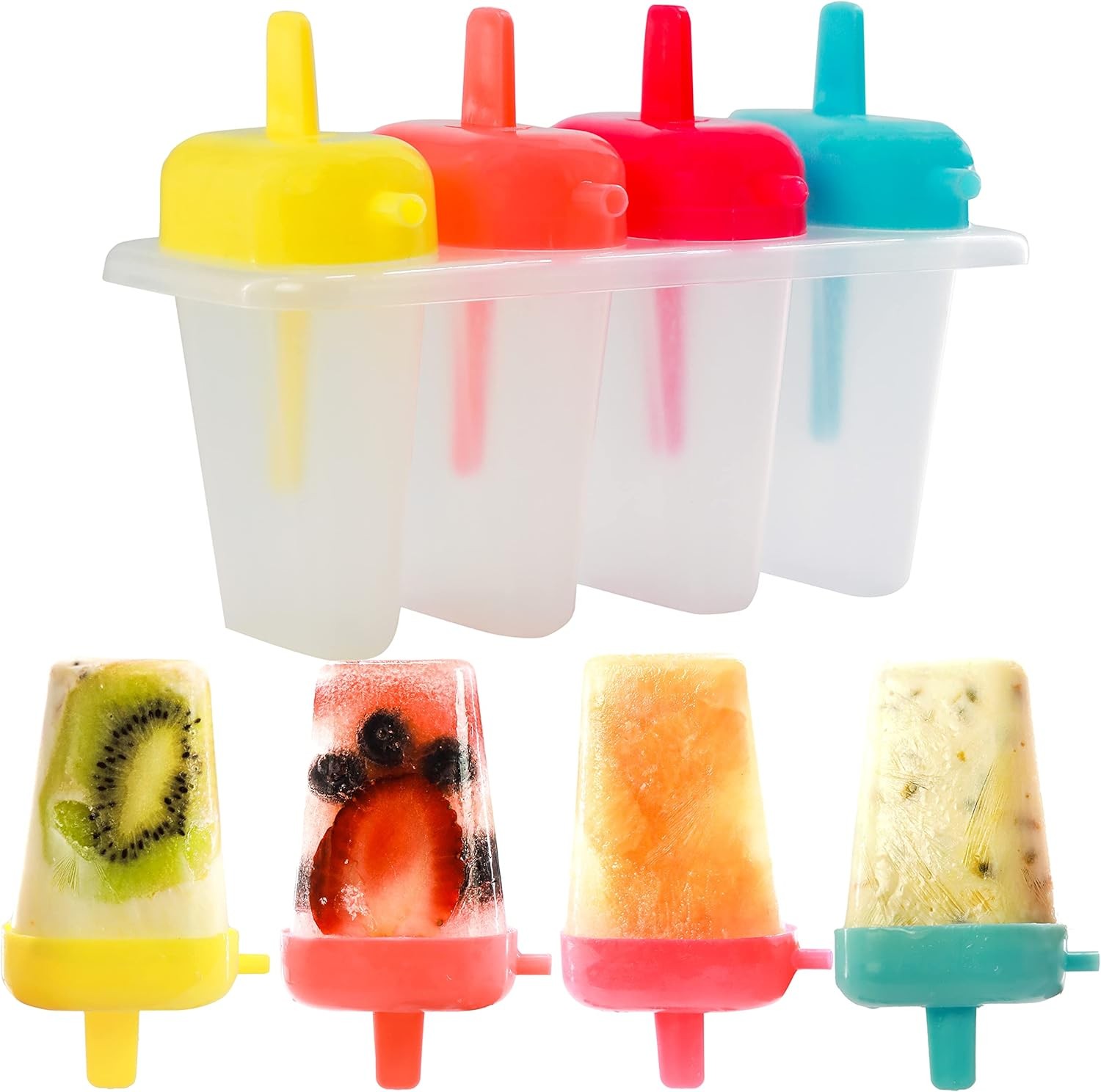 4 Ice Lolly Moulds, Healthy Refreshing Fruit Treat Maker with Sticks and Drip G