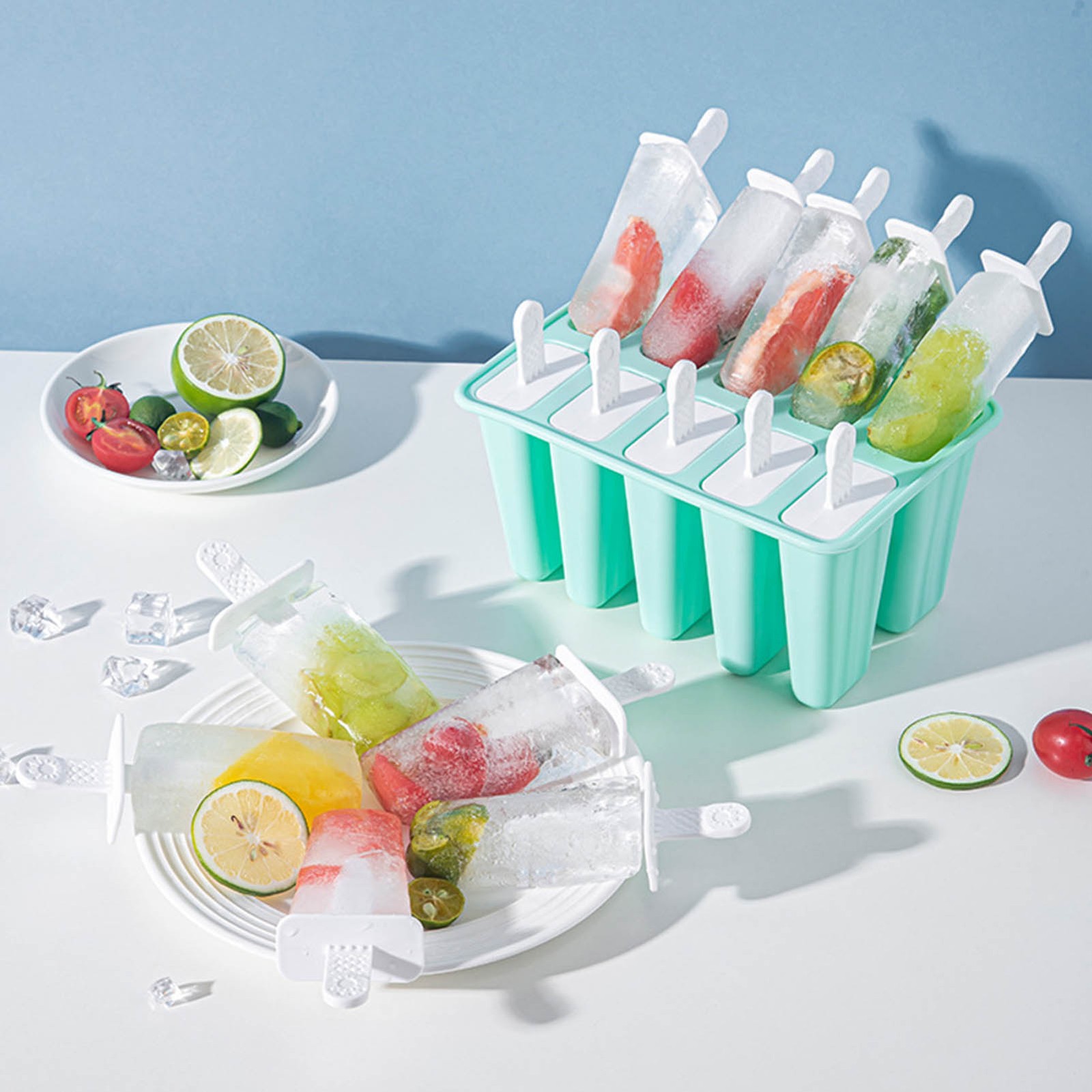 Ice Cream Mould 10 Grids Food Grade Silicone Non Stick Green Ice Lolly Maker LW