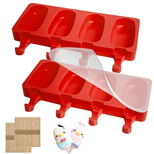 2 Pack Ice Lolly Moulds, Cakesicle Moulds, Cake Pop Mould, Popsicle Mould, Homemade Oval Popsicle Maker with 2 Lids & 100 Wooden Sticks for DIY Ice Cream (Red)