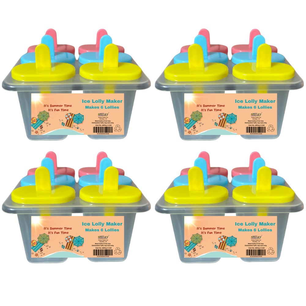 eMKay® 4 - Ice Lolly Maker 6 Section Mould Tray Popsicle Frozen with Drip Guards