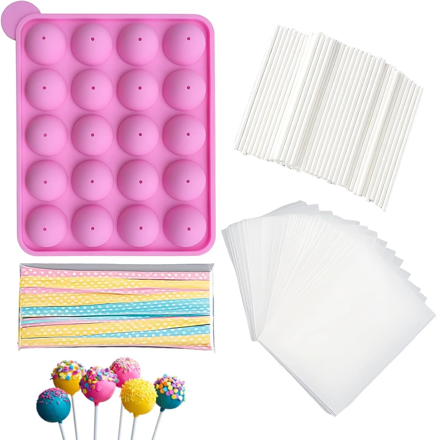 20 Cavity Silicone Cake Pop Mould, Chocolate Lolly Maker, Cake Pop Kit with 100P