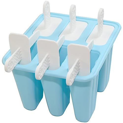 Ram® Silicone Ice Cream Mould Ice Lolly Mould FDA Certified Food Ice Pop Maker Popsicle Molds with Sticks and Drip Guards (6, Blue)