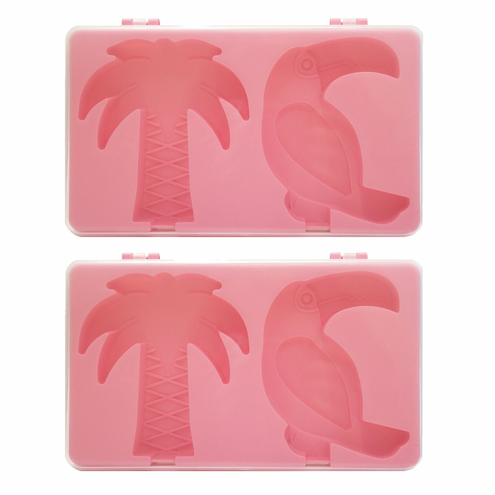 2 x Ice Lolly Maker Set Reusable Sticks Lid Palm Tree Toucan Mould Tropical Pink