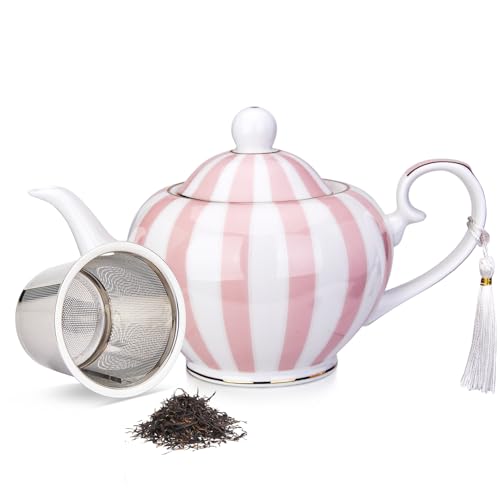 London Boutique teapot with Infuser - Tea Pot infusers for Loose Tea -700ml Capacity Perfect 2 Cup teapot -Easy Grab Handle Teapots (Pink Strips)