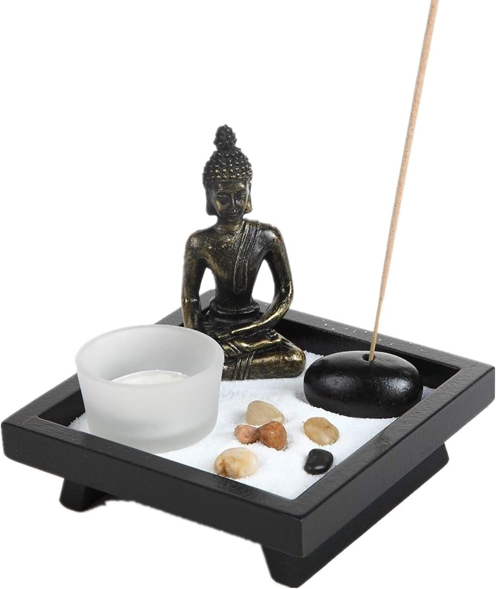 London Boutique Thai Sitting Buddha Ornament Statue Candle Holders Natural Ston