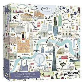Gibsons London Landmarks 1000 Piece Jigsaw Puzzle for Adults - London Map Puzzle by Maria Rabinky - Premium Sustainable Puzzle Made in the UK/EU
