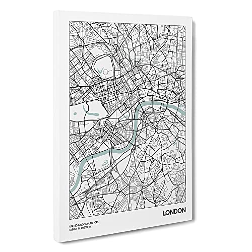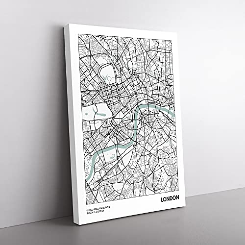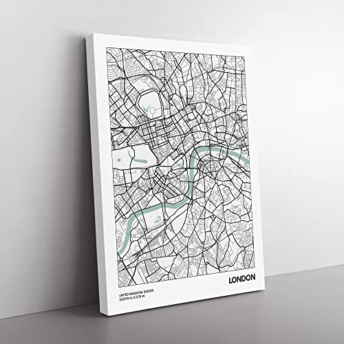 City Map London Uk Modern Canvas Wall Art Print Ready to Hang, Framed Picture for Living Room Bedroom Home Office Décor, 76x50 cm (30x20 Inch)