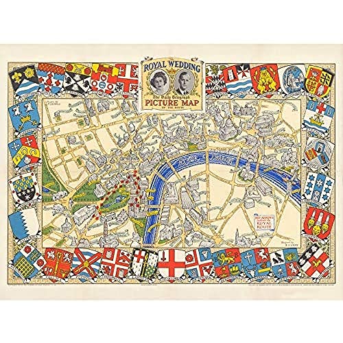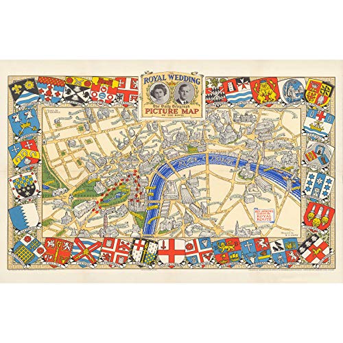 Artery8 1947 Pictorial Map London Royal Wedding Picture Map Large Wall Art Poster Print Thick Paper 18X24 Inch