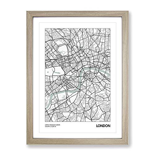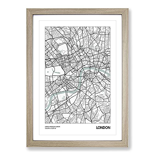 City Map London Uk Modern Framed Wall Art Print, Ready to Hang Picture for Living Room Bedroom Home Office Décor, Oak A3 (34 x 46 cm)