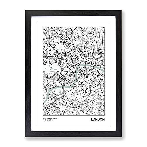 City Map London Uk Modern Framed Wall Art Print, Ready to Hang Picture for Living Room Bedroom Home Office Décor, Black A2 (64 x 46 cm)
