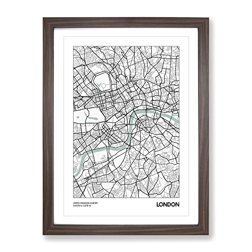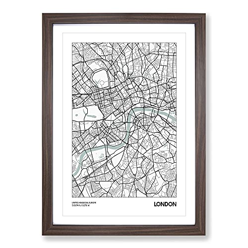 City Map London Uk Modern Framed Wall Art Print, Ready to Hang Picture for Living Room Bedroom Home Office Décor, Walnut A3 (34 x 46 cm)
