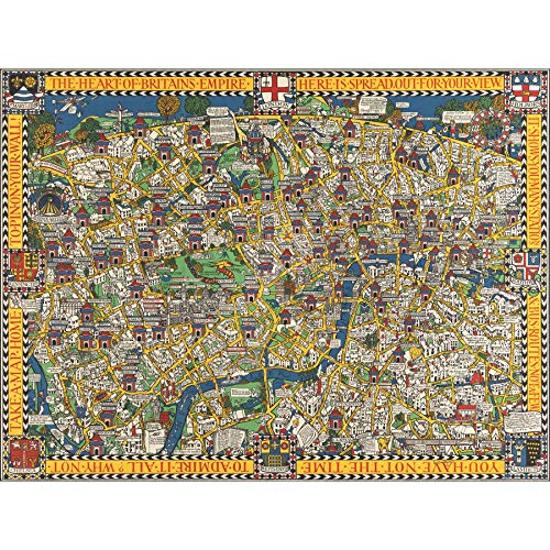 Fine Art Prints Gill 1914 Pictorial Map London Wonderground Large Print Poster Wall Art Decor Picture,18 x 24 inches
