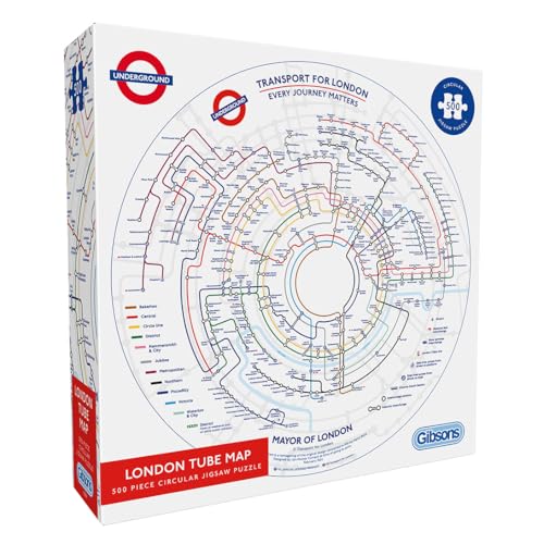 Gibsons Round London Tube Map 500 Piece Circular Jigsaw Puzzle for Adults & Teens – Challenging Underground Puzzle Thick Sustainable 100% Recycled Board, TFL Transport for London, UK Made British Gift
