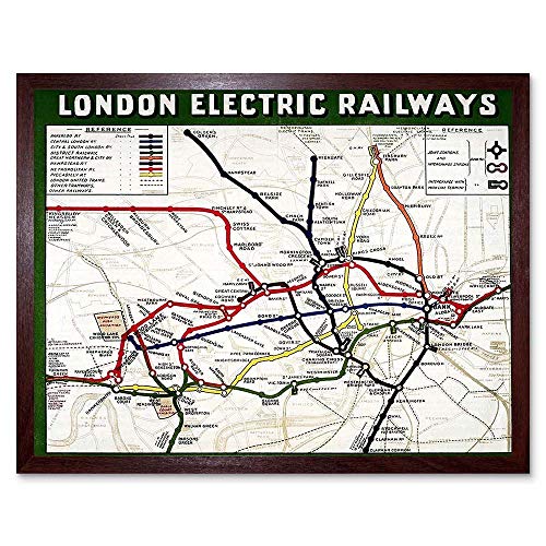 Wee Blue Coo London Electric Railway Map UK Vintage Art Print Framed Poster Wall Decor 12X16 Inch