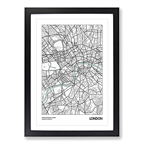 City Map London Uk Modern Framed Wall Art Print, Ready to Hang Picture for Living Room Bedroom Home Office Décor, Black A3 (34 x 46 cm)