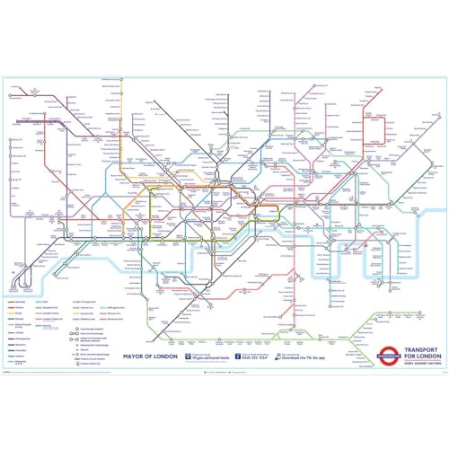 Official Maxi Poster – Tfl (London Underground Map) | Decorative Wall Art | 61cm x 91.5cm Poster for Bedrooms, Dorms & Fans