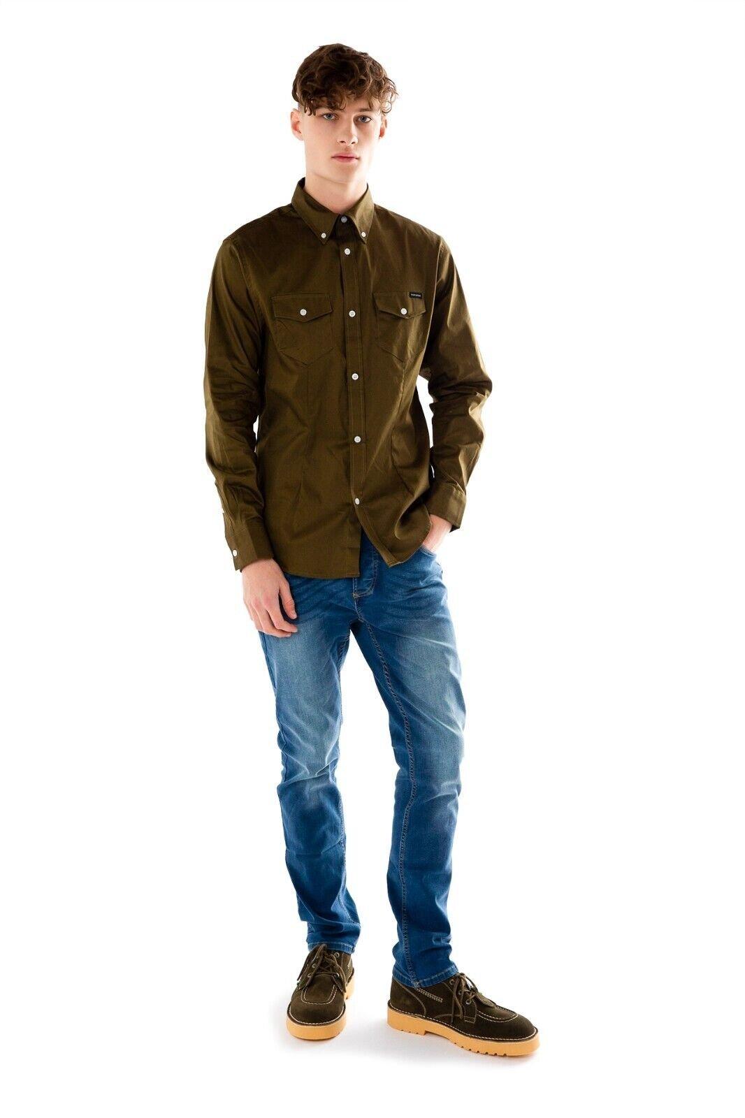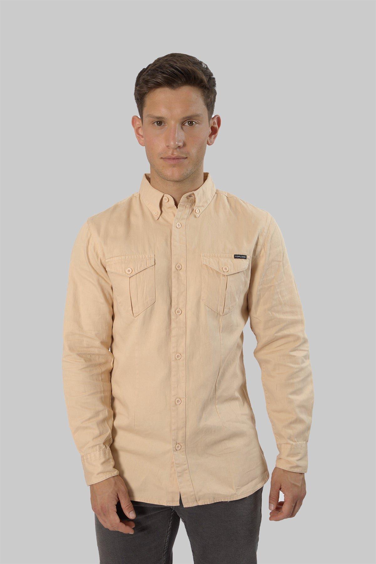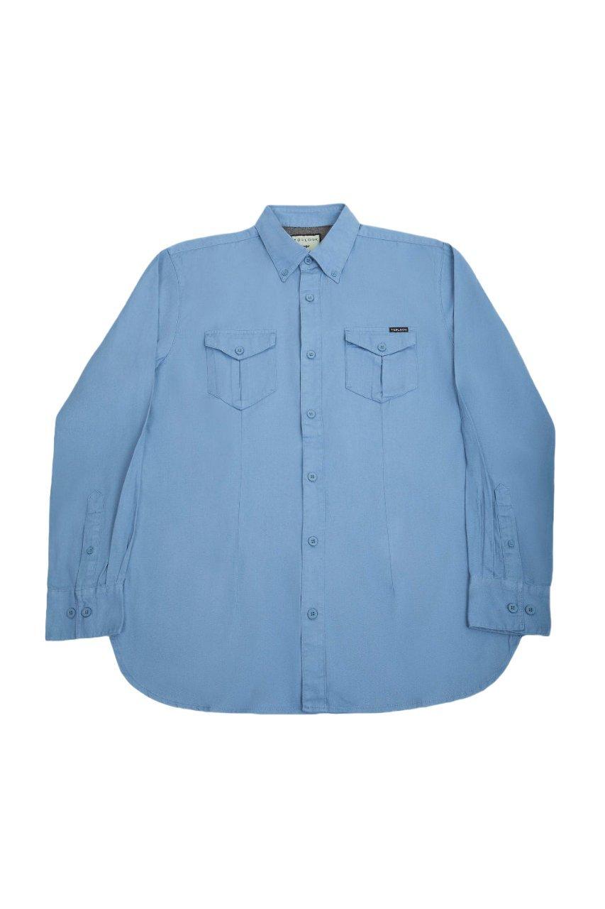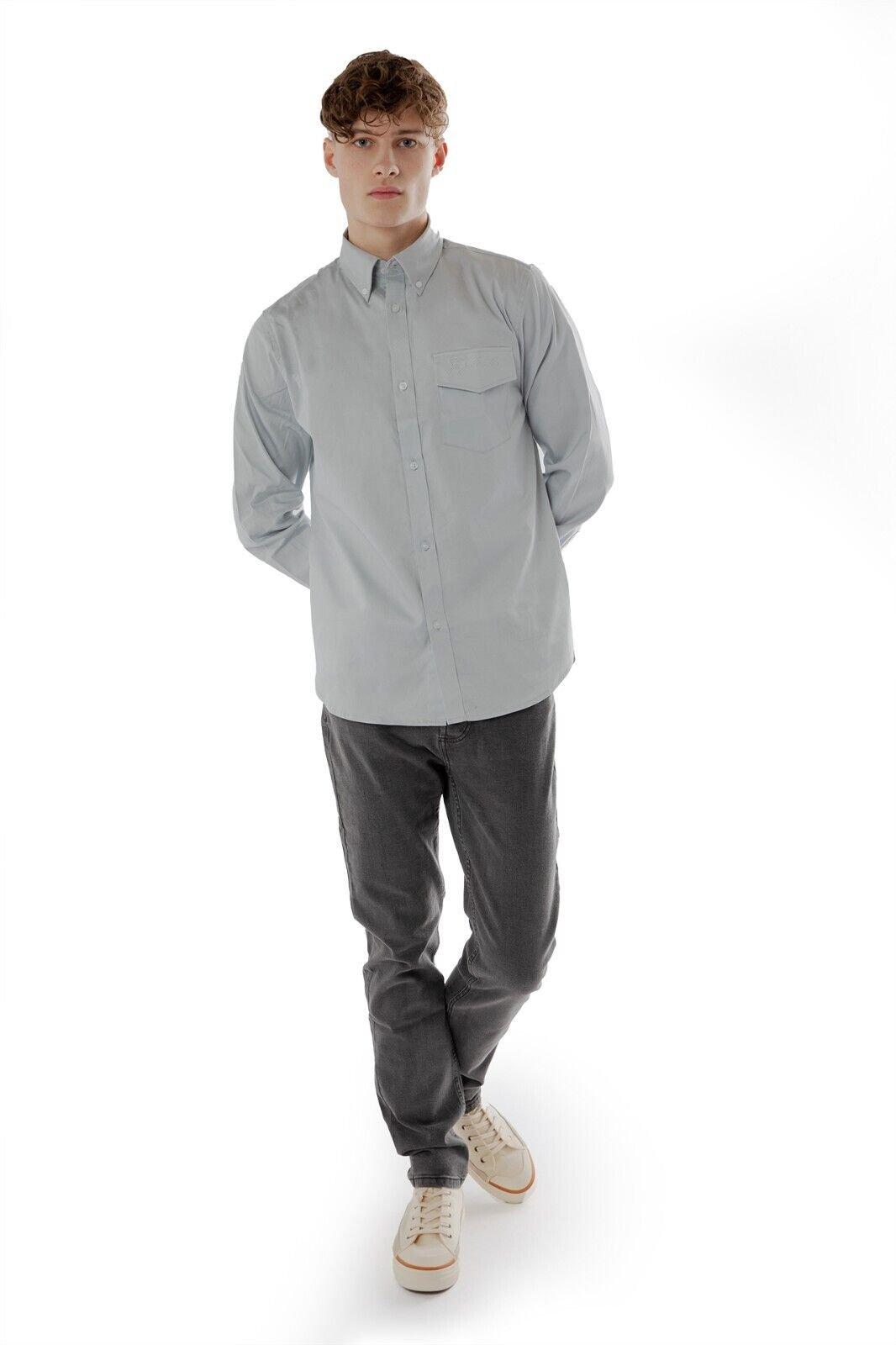 Button Down Collar Long-Sleeved Shirt with Patch Pocket