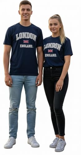 GWCC Unisex London England Applique Embroidery T-Shirt | Premium Cotton Tee with Union Jack Patch | 4 Colors | Sizes XS-4XL (UK, Alpha, L, Regular, Regular, Navy)