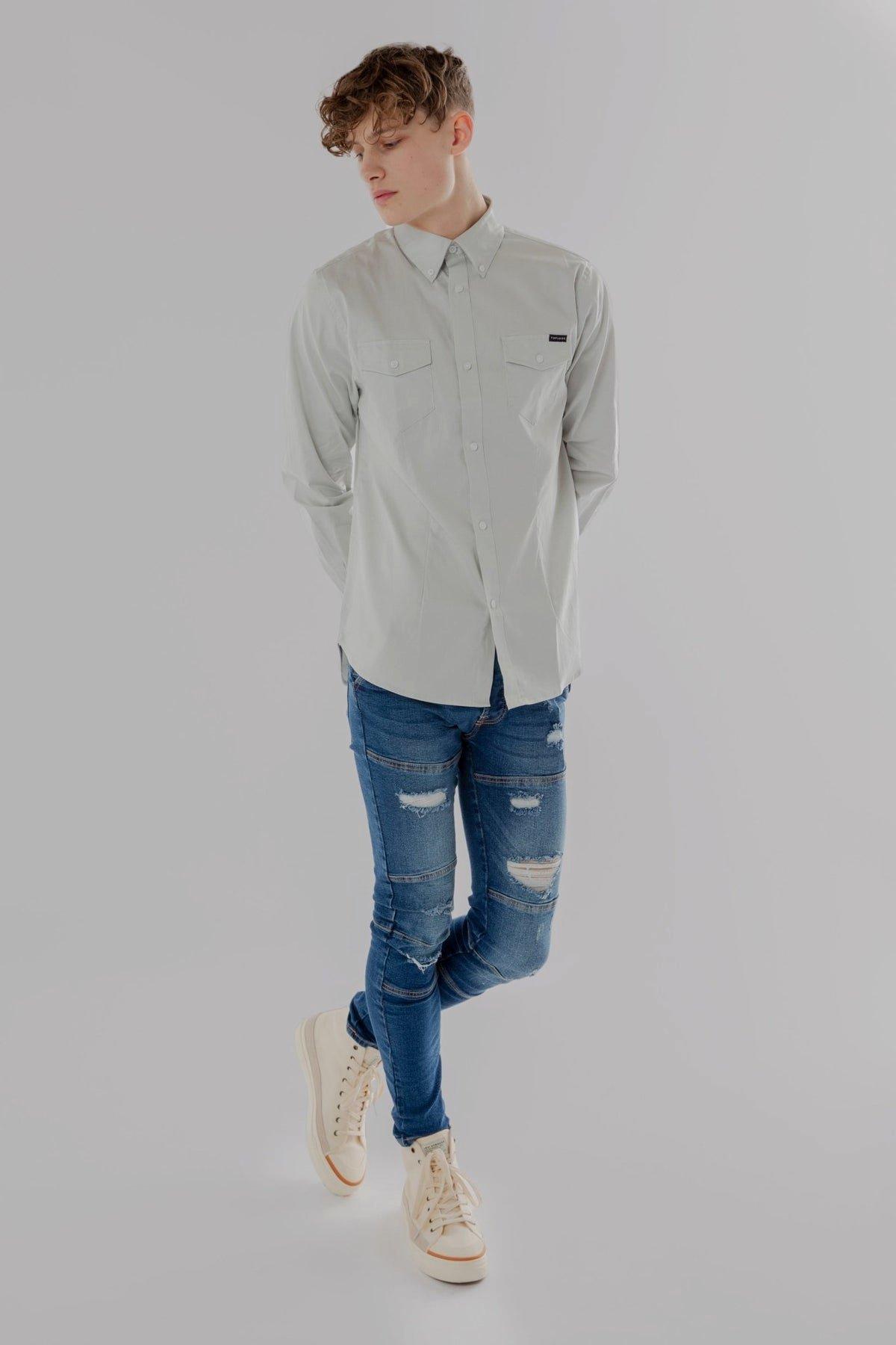 Long Sleeve Shirt with Two Patch Pockets Semi Formal Wear